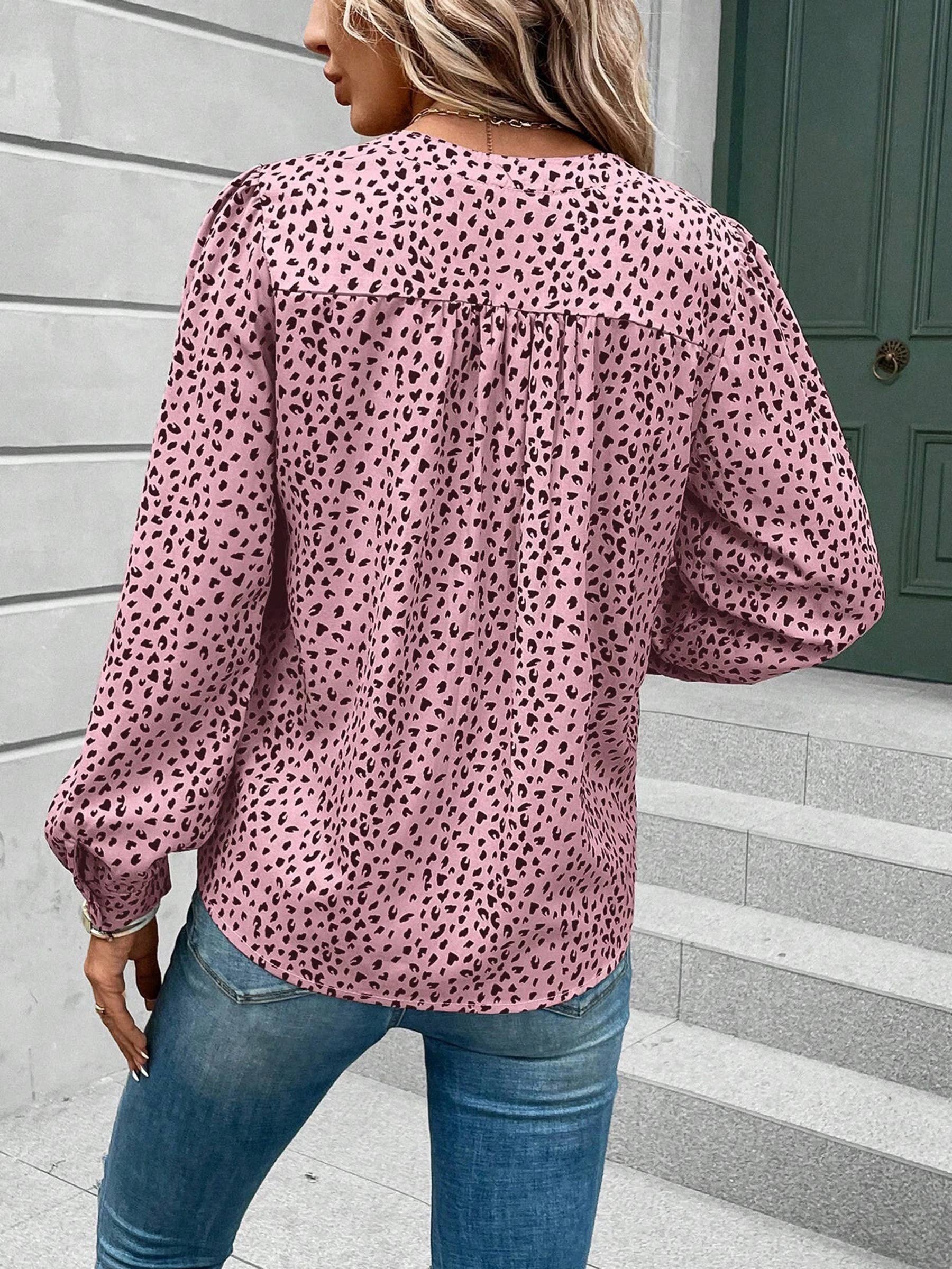 V-neck Pullover Leopard Print Long Sleeved Shirt